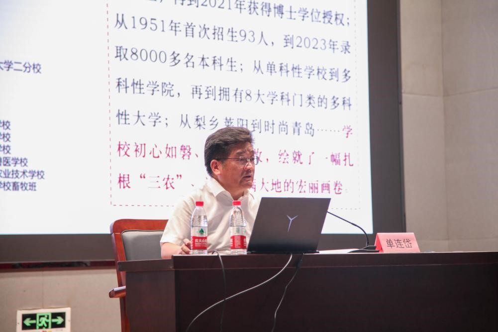 单连岱对2023级新同学的到来表示热烈欢迎和衷心祝贺,他以《不负青春韶华,勇担时代重任》为题,以“何为大学、大学大在何处、为什么上大学”为切入点,对两学院新同学提出殷切期望。他希望同学们深入学习贯彻习近平新时代中国特色社会主义思想和党的二十大精神,学习贯彻习近平总书记给全国涉农高校书记校长和专家代表的重要回信精神和给中国农业大学科技小院同学们的回信精神,践行“矢志三农、艰苦奋斗、开放包容、追求卓越”的青农精神,努力成长为德智体美劳全面发展的社会主义建设者和接班人,为推进乡村振兴、加快农业农村现代化做出应有贡献。
